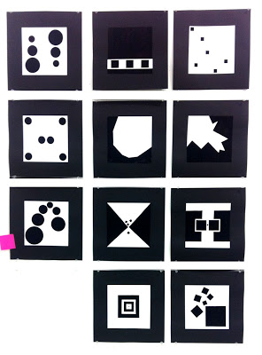 Here is a rough sample of what they will look like on the wall. Dots in first column; opposing square pairs in second column. Opposing pairs should be next to each other, but they do not need to be in the order listed on the handout. Your team will try to identify each opposing set through perception.
