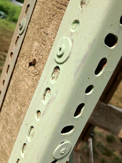 naturally this broke my rule of rawness, of using the recovered materials as is in all their own glory and shame. but I formally had inclination to reduce the visual color disjunct. my bad. so now I am trying to sand down to the natural rust patina. it is just not the same. real sameness is never attainable offline. in failing to follow my ruled system with redemptive attempts at command z (edit > undo), it has come out even better than I could have hoped for. fail that! and my Eeyore lethargy moves just a little more forward in enjoying my hopes of a piglet day.
